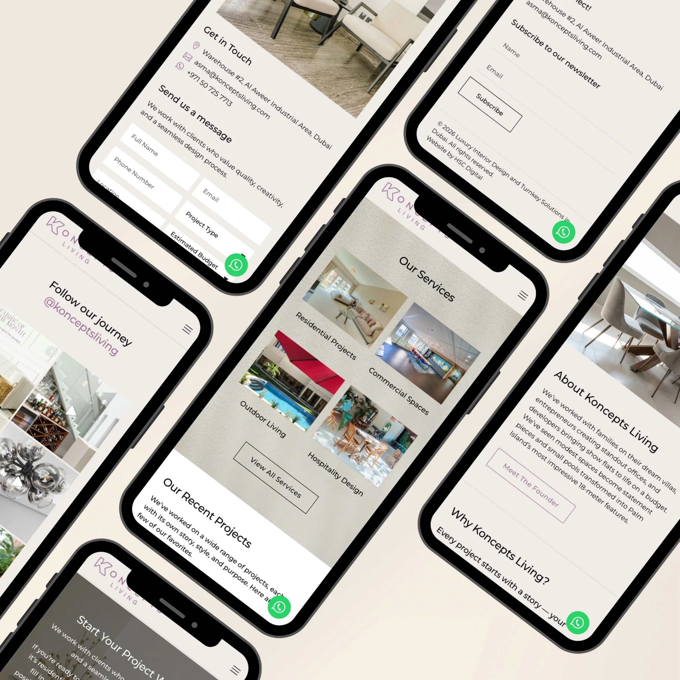 For Koncepts Living, HSC Digital designed and developed a custom website that presents their interior design projects in a refined and visually engaging way. To support their growth, we are also executing advanced SEO and AI optimization strategies to improve visibility across search engines and AI search platforms.