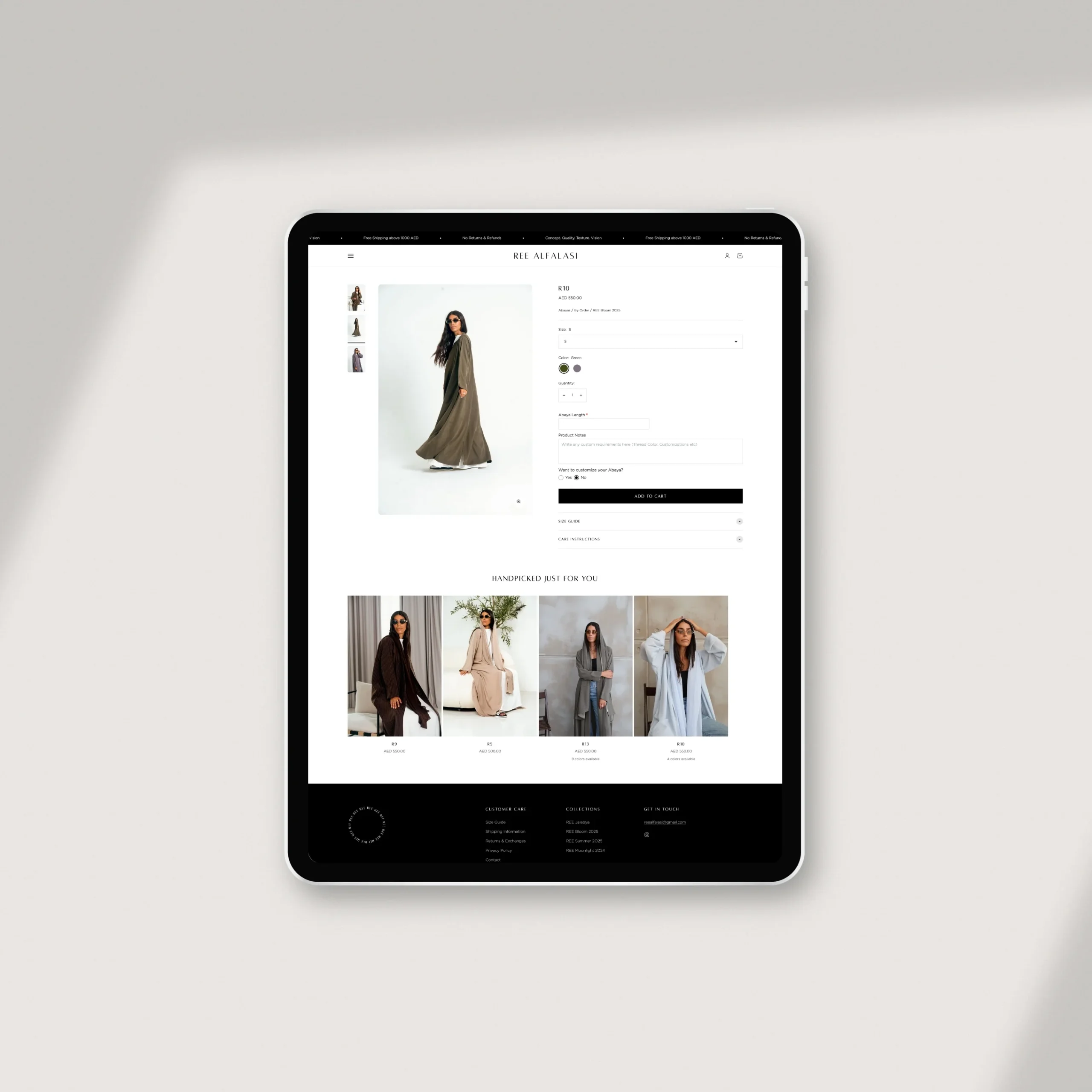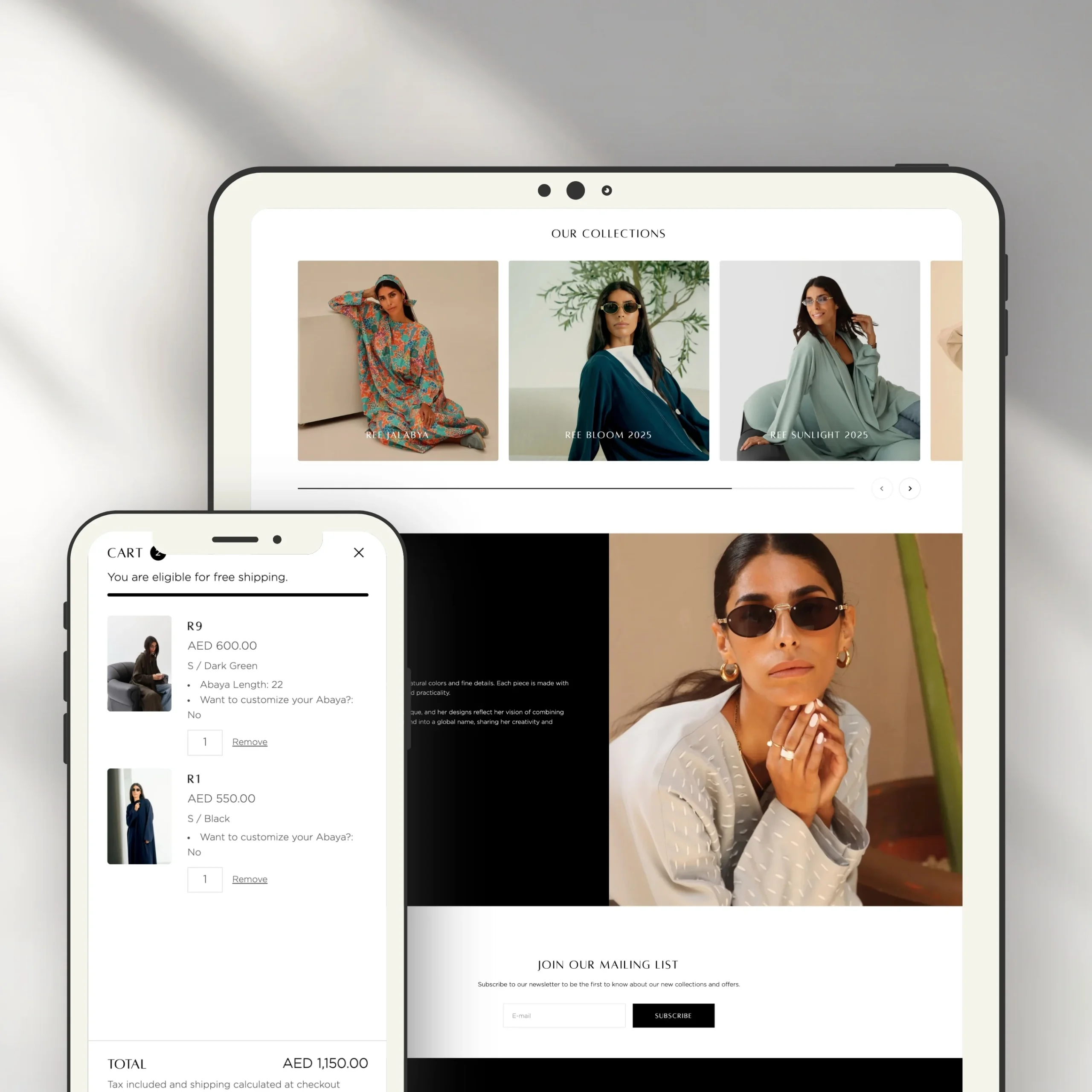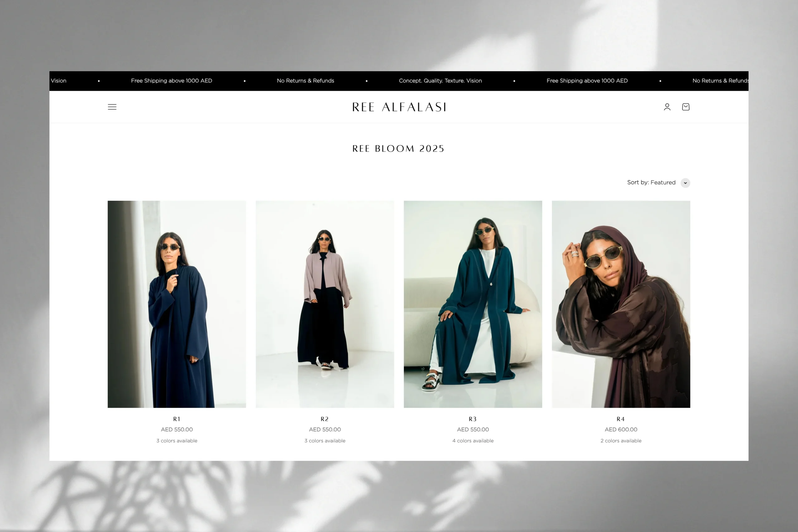 We partnered with Ree Alfalasi to design and develop a Shopify website that brings together their signature abaya collections under one elegant digital experience. Clean, thoughtfully structured, and easy to navigate, the website reflects their vision of confidence, simplicity, and timeless style.